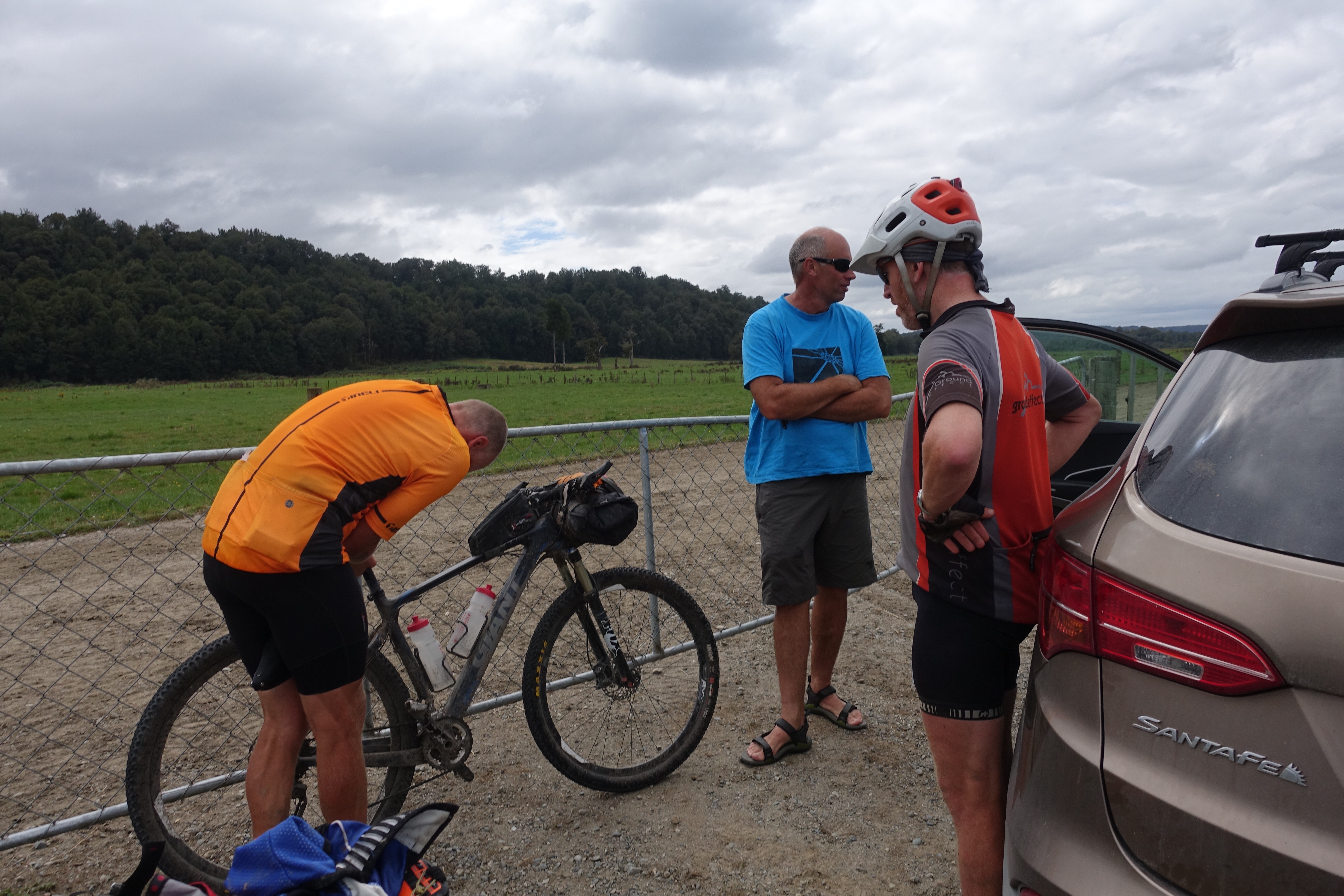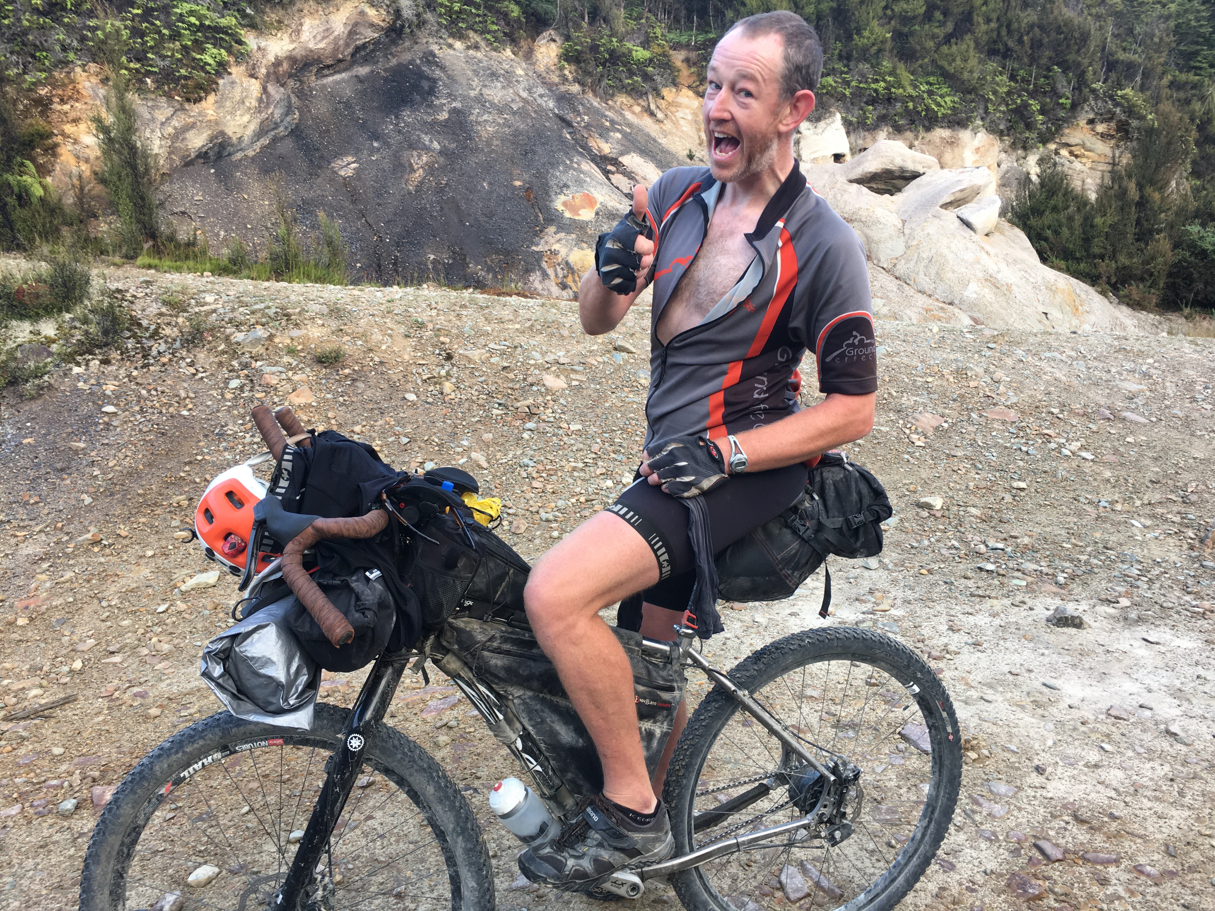 Steve broke his carbon seatpost and Garry a roadie friend from Blackball (just down the road ) came to the rescue , and as it happened my tired decided to delaminate about now and Garry went home and found me a 26 in mountainbike tire and returned just as it went flat . Thanks garry , saved me a temporary repair and wait in greymouth for an open biem shop . Trails angles to the rescue again .